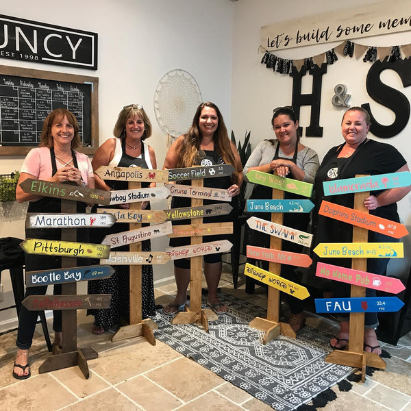 The instructor will guide you through the process, from start to finish. We will also help you with the selection of stain and paint color options. If you get lost, written instructions are provided at the center of each table as well as on the wall. We will be hands-on throughout the entire workshop, but if at any time you have questions or need help, please let us know! We are there to HELP YOU!!
