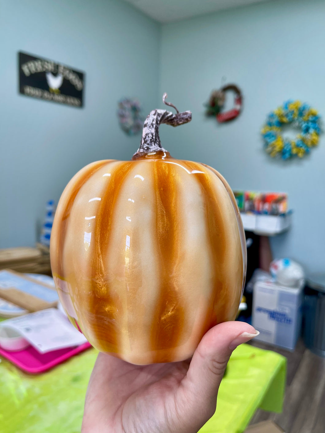 Perfect for beginners or seasoned makers, this workshop includes all materials and protective supplies. You’ll leave with a beautiful custom pumpkin that’s ready to display for the season.