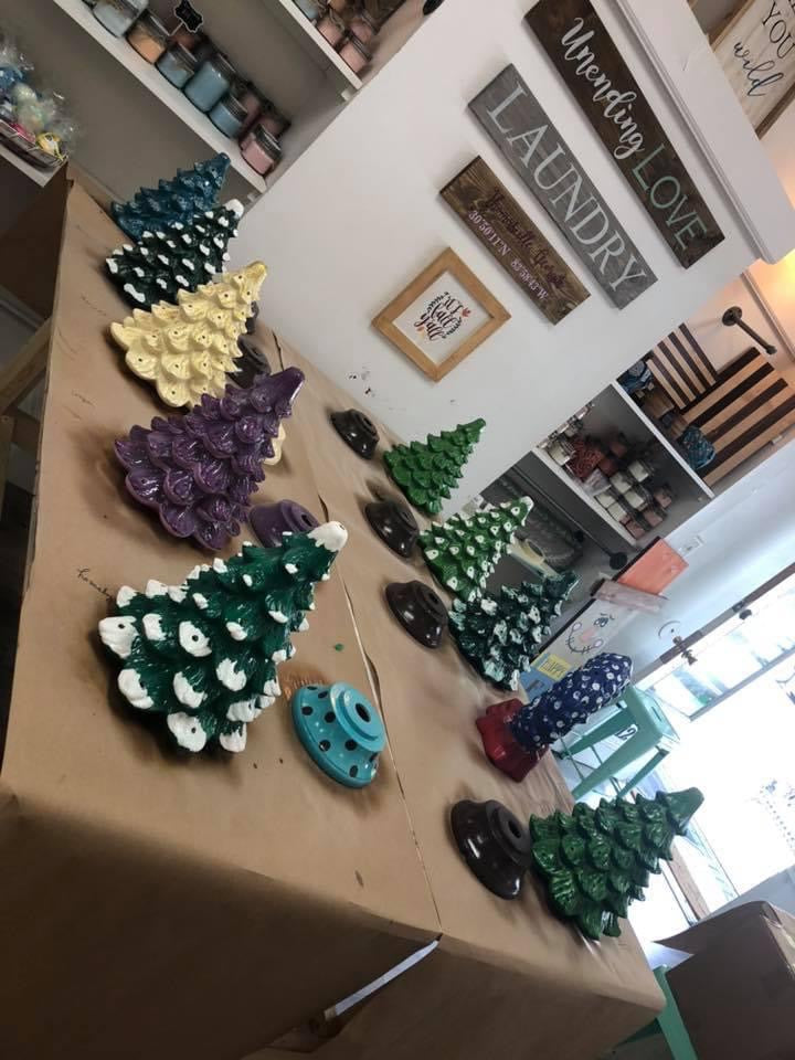 Ceramics will be painted in your choice of paint colors. We have different tree sizes to choose from.  We will have metallic paints as an option as well.  We will also have SNOW as an add on for those bold enough to add it! No kiln firing required, we do not glaze or fire these.