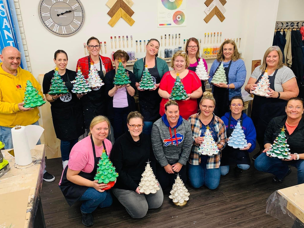 Host a Ceramic Tree paint party in the comfort of your home with your friends and family this holiday season!  We will pack up all supplies and send you home with everything you need!