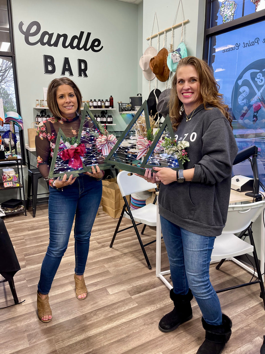 Join us for a brand new holiday workshop featuring wood triangle trees! You will stain or paint your trees in your choice of colors. We'll have a variety of embellishments such as bows, greens, ribbons, and more to include on your trees. Do you love the glow of lights or prefer to keep it simple? Lights can be added for an additional charge.