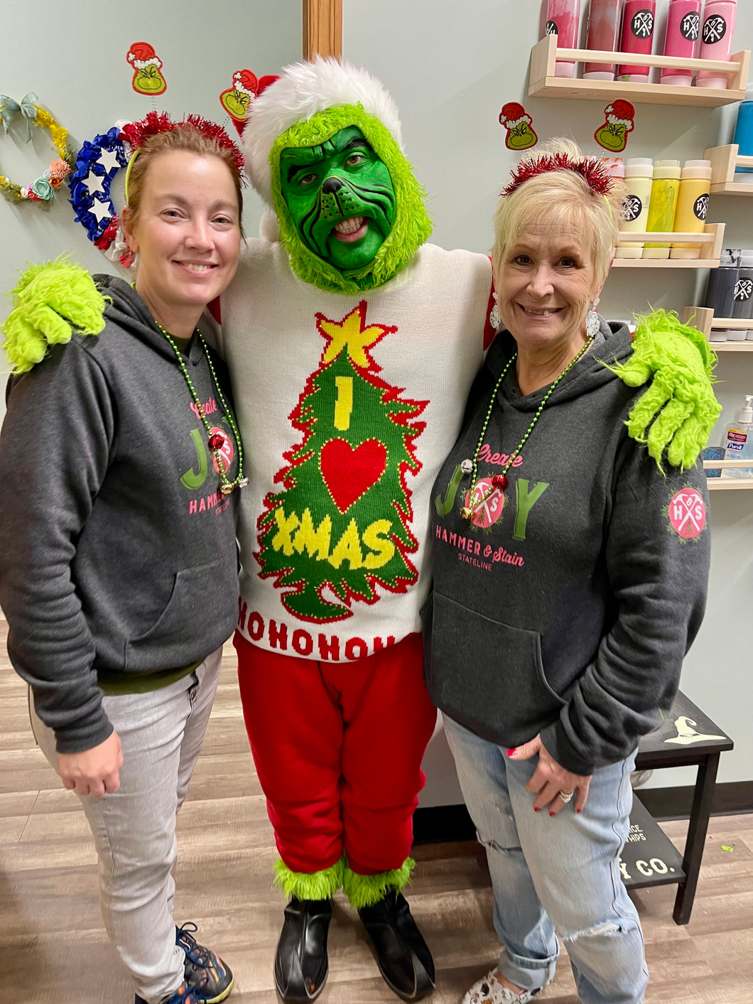 Our favorite grouchy green friend will be swinging by Hammer & Stain Stateline again this year! He'll be helping us get crafty with some grinchy projects.